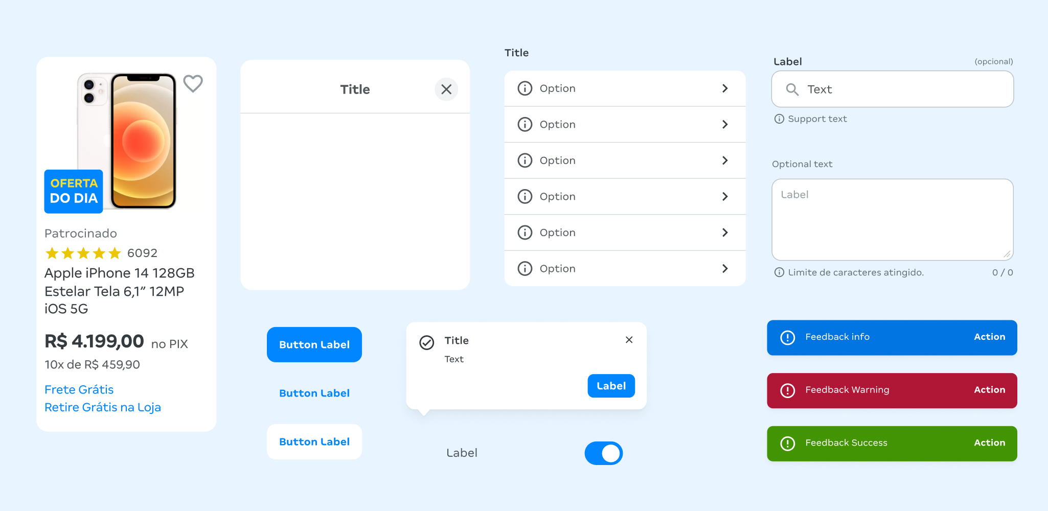 Sistema mobile nativo para iOS e Android: foundations, componentes e processos de governança sem precisar parar o produto.